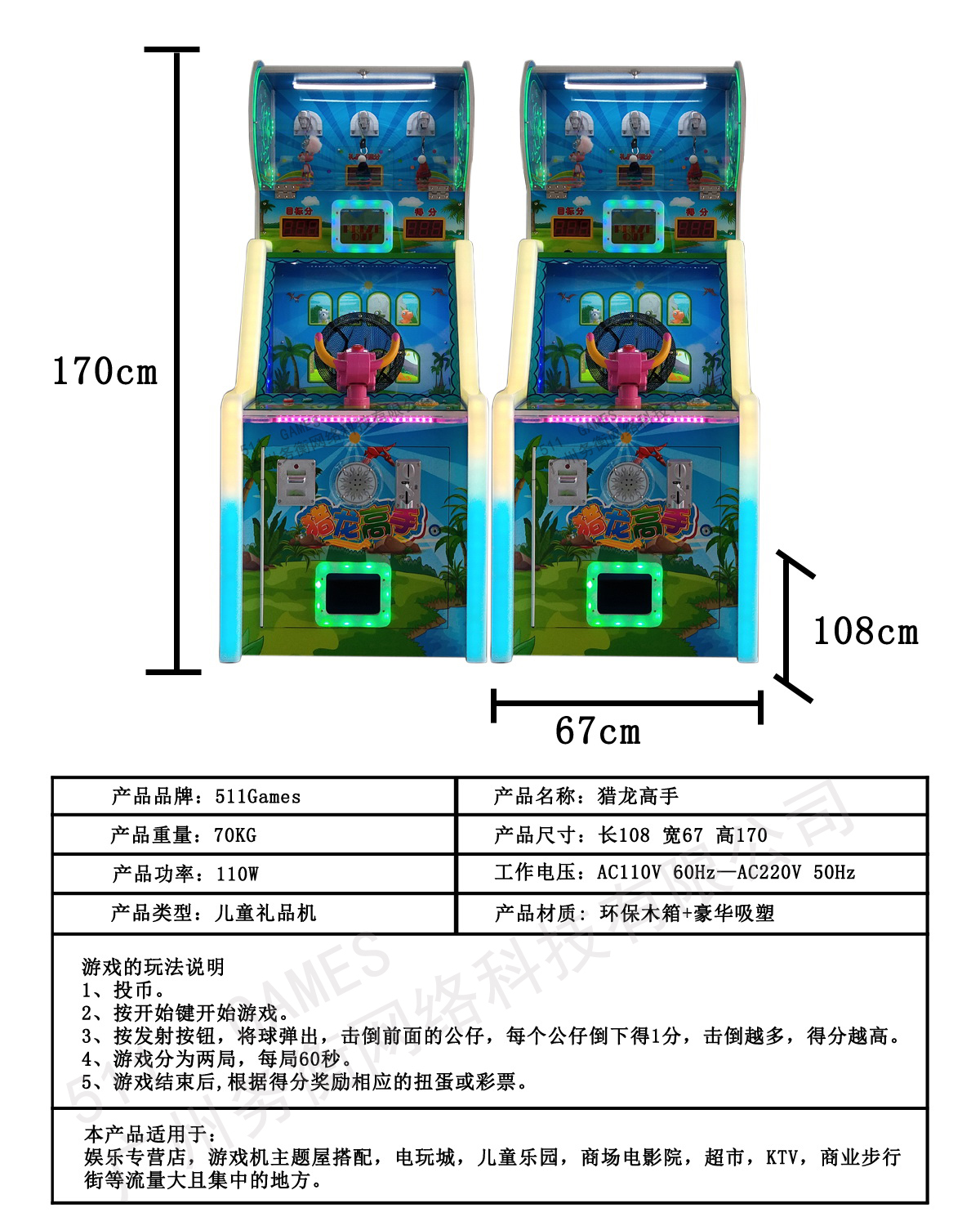 适用范围: 娱乐专营店,游戏机主题屋搭配,电玩城,儿童乐园,商场,超市,KTV,商业步行街等流量大且集中的地方